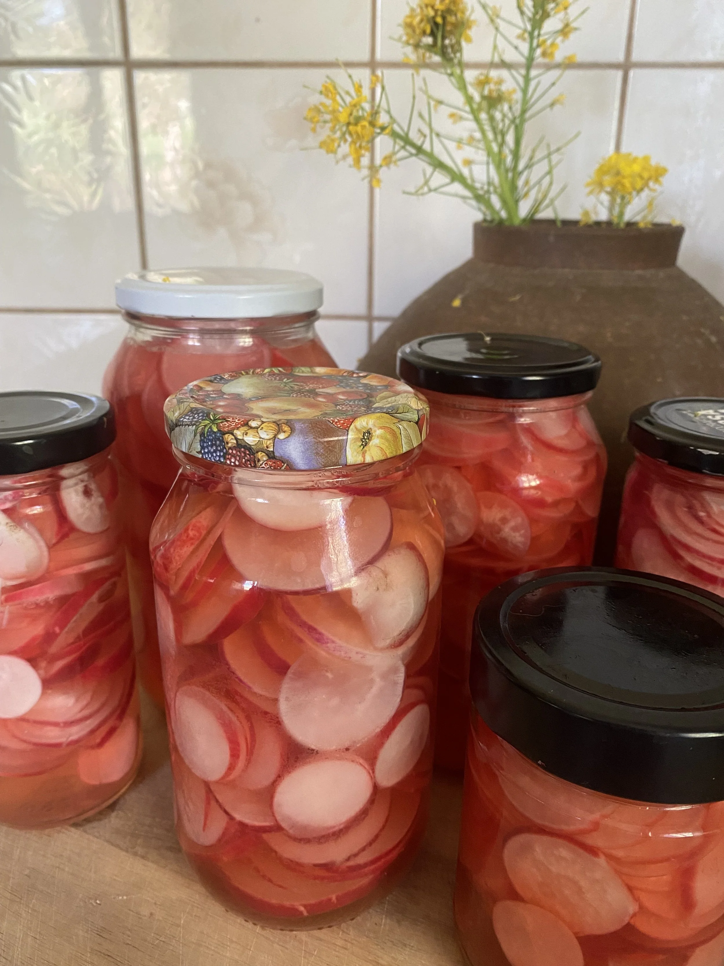 As we grow a lot of radishes and carrots one of my favourite recipes is to make a simple pickled Carrot and Radish brine to keep in the fridge.